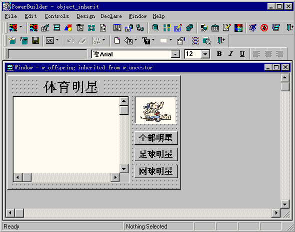 祖先窗口的功能是显示数据库当中所有的体育明星的资料,我们希望修改后代窗口,使之只显示足球明星的资料。