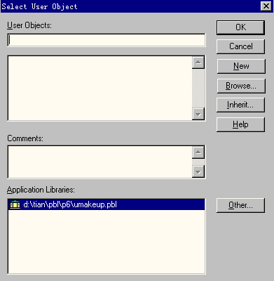 上面的CLASS组框表示要建立类用户对象,其中也包括定制和标准两种,它们的含义与刚才介绍的可视化用户对象的对应部分大致相同,在后面的内容当中,我们将加以详细地介绍。
