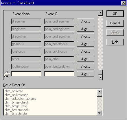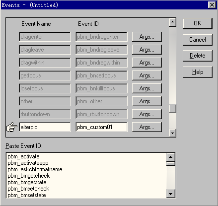 所谓用户事件就是在POWER BUILDER标准事件以及WINDOWS标准事件之外,由用户自己定义的事件。下面我们示范如何定义和使用用户事件。