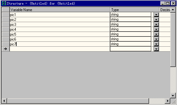 定义结构的方法非常的简单。选择DECLARE中的USER OBJECT STRUCTURES命令,系统弹出结构选择对话框,单击NEW按钮,新建一个结构。在VARIABLE NAME 一栏当中输入变量的名字,选择变量的类型。输入需要的变量之后,关闭结构定义画板。如图11-8。