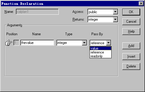 PASS BY列表框是用来定义参数传递方法的。单击这个列表框,如图11-18。
