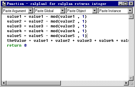 在RETURN列表框中可以选择当前函数运行的返回值类型。我们接受缺省的INTEGER整数类型。