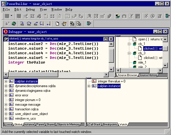 进行调试的另一个基本手段就是单步运行代码。PAINTER BAR上面的STEP按钮就是用来完成这个工作的。一边单步运行程序,一边观察WATCH窗口中的变量的值的变化,我们可以很好地掌握程序的运行情况。