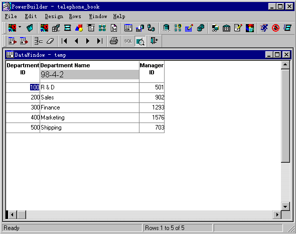 在前面定义数据窗口的数据源的时候利用标准的SQL语句,可以达到过滤,排序、分组数据,从而只在数据窗口中显示需要的数据的目的。当数据窗口的数据源确定好之后,有时我们可能只想显示其中的一部分数据,这时就需要对已经从数据库中取到数据窗口中的数据再进行过滤,排序,和分组。这时不需要象前面那样生成SQL语句提交DBMS执行,而是完全由PowerBuilder为我们做这些事情,接下来就分别介绍如何过滤,排序,和分组数据。
