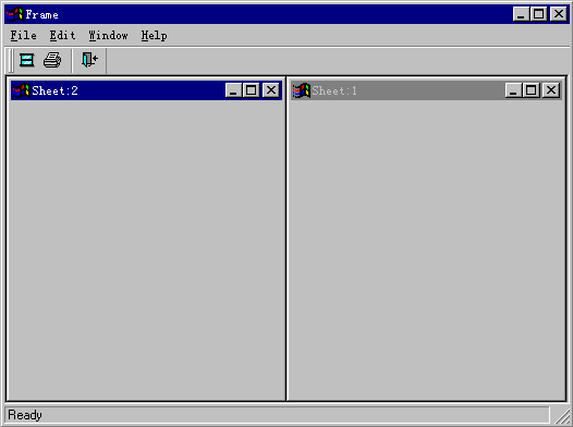 第五种类型的窗口是MDI FRAME类型,它的特点是在这种类型的窗口中一般不放入控件,而是把这种类型的窗口作为其它类型的窗口的容器,利用这种类型的窗口就可以实现多文档的界面,在容器中的每一个窗口用来显示一个文档。在我们这个程序中的W-GENAPP-FRAME 窗口就是一个MDI FRAME类型的窗口。单击POWERBAR工具条上的RUN按钮运行应用程序,在运行的应用程序中单击工具条上的NEW按钮,然后选择WINDOW菜单上的TITLE VERTICAL菜单项,可以看出主窗口的工作区中显示有几个窗口,这些窗口可以用来显示不同的文档(图6-2)