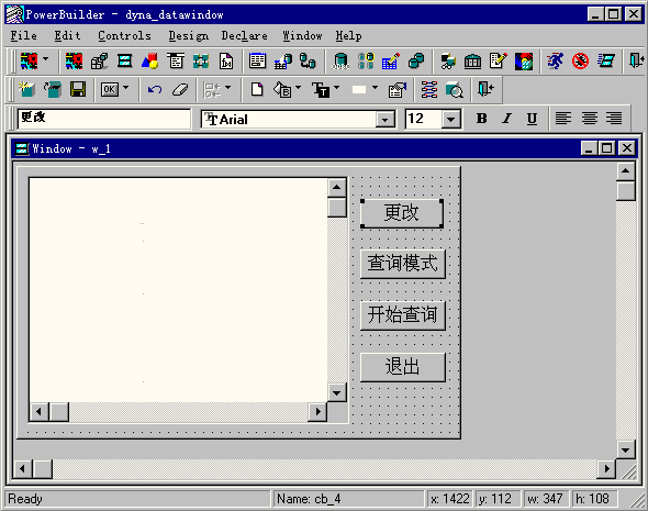 这段脚本的意思是将DW_1这个数据窗口的显示内容从足球明星更改为网球明星。请注意最后的这两行脚本。当我们创建新的数据窗口对象的时候,已经断开了数据窗口控件与事物对象的连接,所以当我们调用CREATE函数之后,还要再次调用SETTRANSOBJECT来重新建立相应的连接。